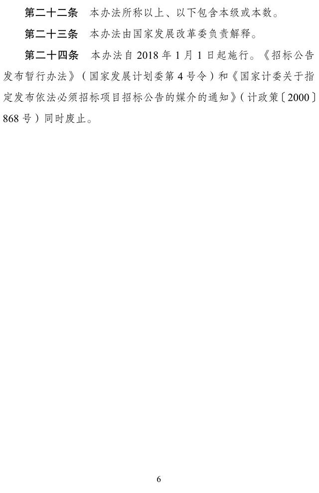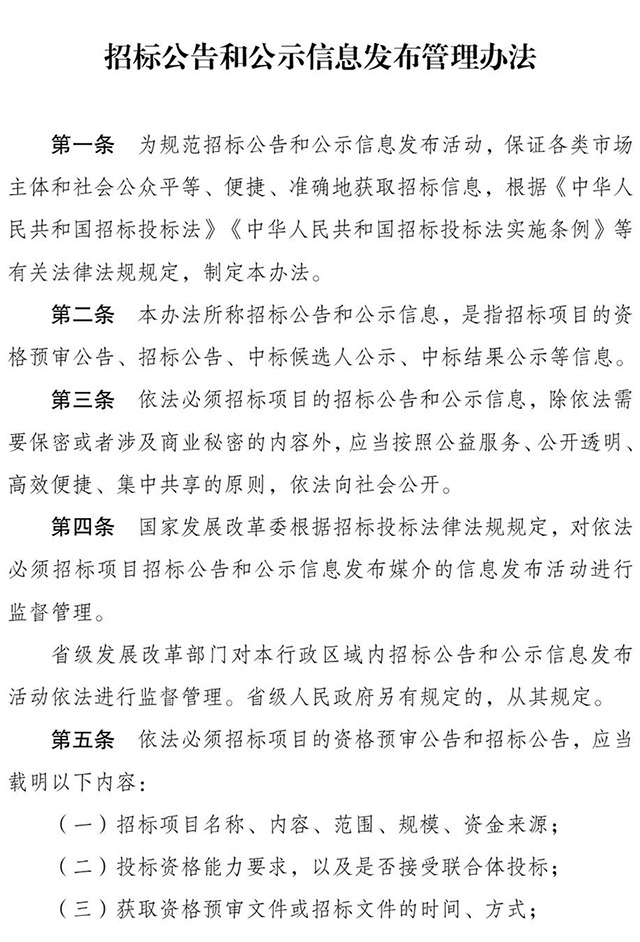 为规范招标公告和公示信息发布活动,进一步增强招标投标透明度,保障公平竞争市场秩序,我们制定了《招标公告和公示信息发布管理办法》,现予印发,自2018年1月1日起施。